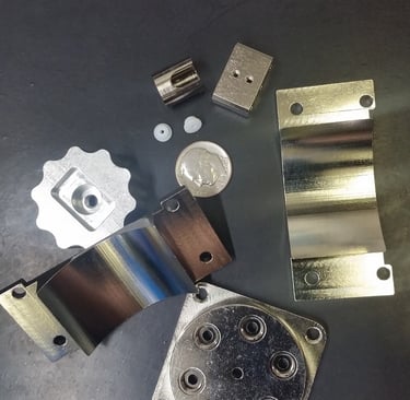 We specialize in precision machining and custom fabrication of small parts. Our equipment includes a CNC mill and lathes, manual mills and lathe, surface grinder, bead blast cabinet, welding equipment, and the necessary inspection to support our manufacturing.